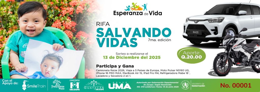- El lugar de entrega de los premios es en oficinas centrales de Esperanza de Vida, Km 146.5 Aldea Llano Verde, Río Hondo, Zacapa.